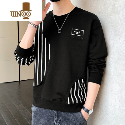 YANXU条纹卫衣男士2023新款潮牌圆领内搭上衣服潮流长袖t恤男装