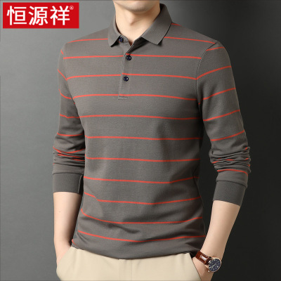 恒源祥纯棉长袖t恤男春秋季条纹polo衫中年男士宽松休闲全棉男装