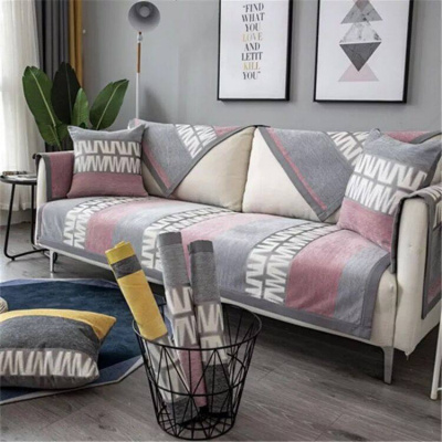 家柏饰(CORATED)沙发垫 四季通用防滑沙发巾盖布北欧简约加厚 沙发套全包套罩 雪尼尔非凡嫩粉 90*90cm
