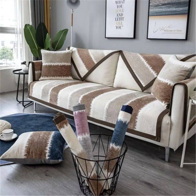 沙发垫 四季通用防滑沙发巾盖布北欧简约加厚 沙发套全包套罩 雪尼尔灰咖条纹 45*45抱枕套不含芯