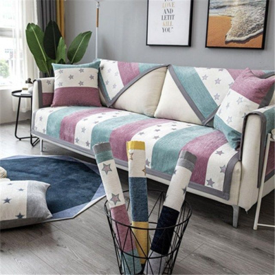 沙发垫 四季通用防滑沙发巾盖布北欧简约加厚 沙发套全包套罩 雪尼尔绿紫星星 45*45抱枕套不含芯
