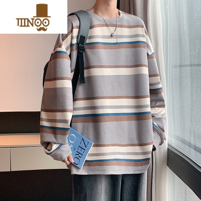 YANXU秋季新款日系cityboy青少年宽松廓形休闲条纹衬衫男长袖