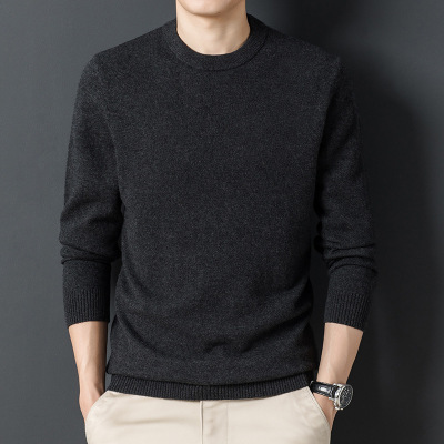 男装秋冬新款300g羊毛衫男士羊毛衫圆领保暖纯色打底毛衣男
