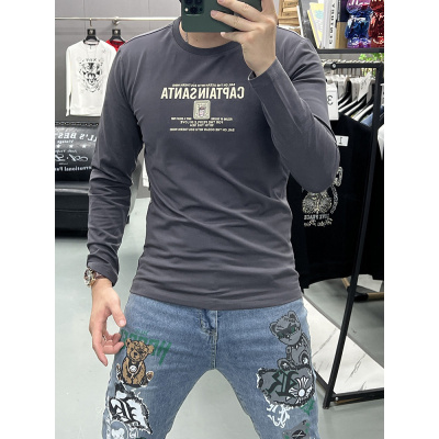 春秋季新款长袖T恤潮流时尚字母青年上衣修身体恤打底衫男装