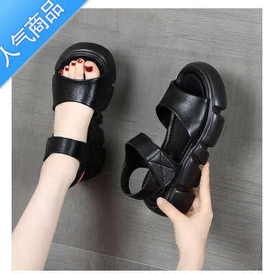 SUNTEK夏季复古风时尚松糕厚底软底凉鞋运动百搭镂空女鞋皮带扣包头凉鞋