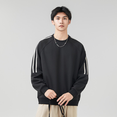 男装春季新款圆领卫衣男士韩版潮流条纹套头上衣宽松休闲打底厂家