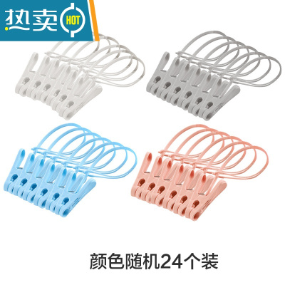 敬平晾晒夹子晾衣夹塑料固定衣服小号防风夹家用多功能带绳晾袜小夹子 24个装 颜色随机