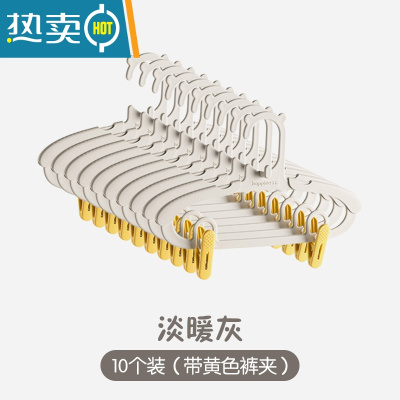 敬平儿童晾衣架多功能婴儿衣架多夹子宝宝小孩袜子衣服挂防滑伸缩家用 淡暖灰*10支+20个夹(伸缩+叠挂) 1个衣夹