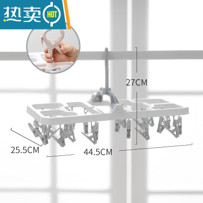 敬平折叠衣架袜子内衣晾晒多功能夹子收纳器衣服架塑料晾衣夹内裤架 24夹 欧灰