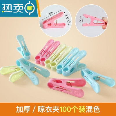 敬平加厚晾衣夹夹子晾衣架晒被子大夹子防风衣服塑料小夹子晒衣夹 颜色随机加厚/防晒[100个装]晾 衣夹