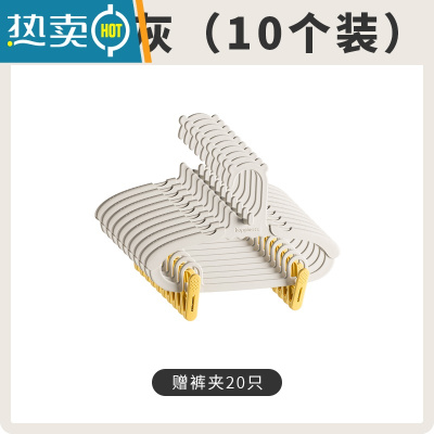 敬平儿童晾衣架小号家用挂衣婴儿宝宝衣架带夹子多功能收纳 淡暖灰(带裤夹) 10个衣夹