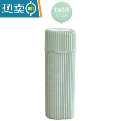 敬平大容量防尘牙膏牙刷收纳盒户外旅行便携扁形带盖刷牙洗漱杯 北欧绿 扁形19.5*6.5cm