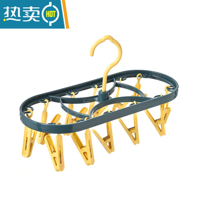 敬平多夹子衣架家用晾袜子器学生儿童夹挂衣服架子衣挂宿舍用晒袜架 椭圆型12夹蓝+黄 1个衣夹