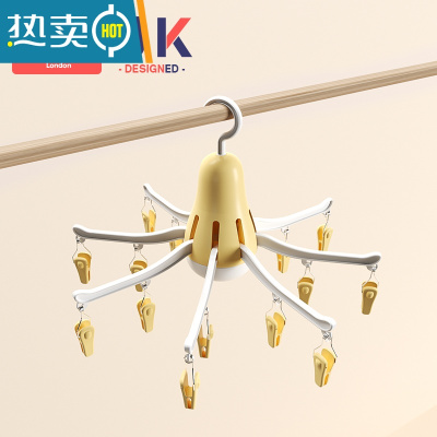 敬平多夹子晾衣架家用晾袜子器学生婴儿衣物挂钩架子宿舍用晒袜架 尼奥黄 1个衣夹