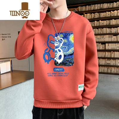 YANXU长袖T恤男休闲高街小熊印花宽松时尚潮搭男装设计感上衣服
