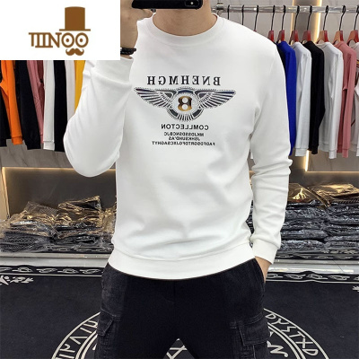 YANXU新款欧货潮牌圆领套头卫衣男时尚印花烫钻修身男装长袖打底衫