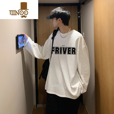 YANXU新款男装长袖t恤字母印花学生圆领卫衣休闲宽松打底衫潮