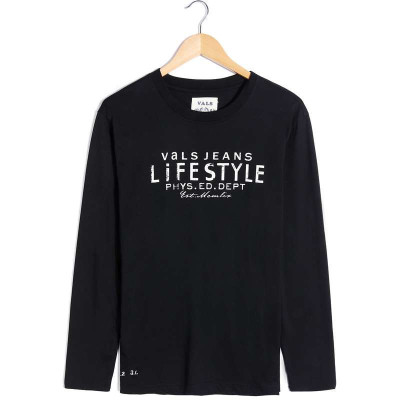 VaLS 男装经典米字旗复古怀旧圆领长袖T恤字母T恤010200144(黑色/XXL)