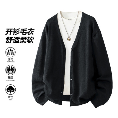 男装宽松舒适保暖毛衣男春秋季新款开衫领纯色针织衫慵懒外套上衣