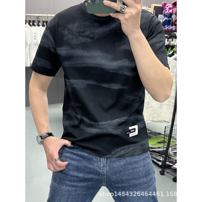 男装夏季新款短袖漂染条纹喷T恤男高街潮牌水洗个性痞帅男士上衣