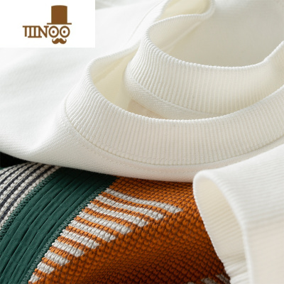 YANXU轻奢薄款拼接白色圆领卫衣男长袖修身休闲外穿上衣t恤男装