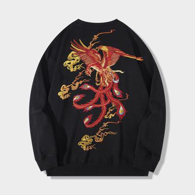 国潮男装重工凤凰刺绣重磅卫衣23秋冬新款上衣休闲国风潮