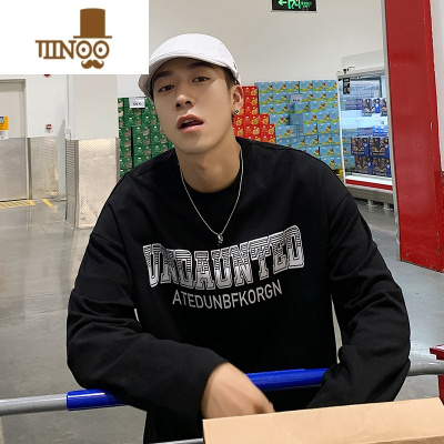 YANXU潮牌印花卫衣男修身长袖T恤男装套头上衣冬款时尚个性加绒