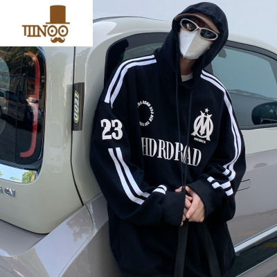 YANXU美式连帽卫衣男2023潮牌复古字母印花痞帅男装套头衫上衣潮