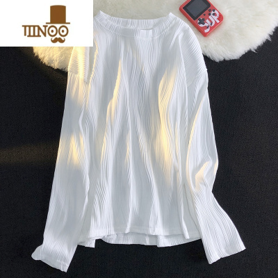 YANXU感冰丝长袖T恤男装潮牌百搭纯色薄款外穿圆领套头体恤衫上衣