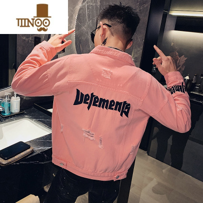 YANXU粉色牛仔外套男韩版潮流牛仔衣潮牌新款炸街粉红色男装夹克