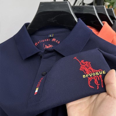 商务衫秋季男装长袖T恤刺绣翻领大码POLO衫潮流纯色男装上衣