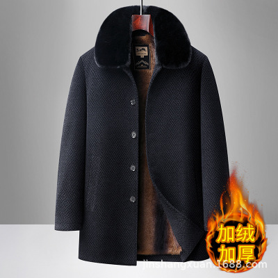 男士大衣爸爸冬装外套加绒加厚保暖棉服中老年棉衣男爷爷棉袄外套