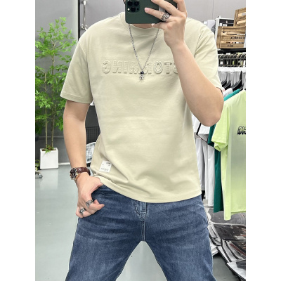 重磅短袖T恤男款夏季新款个性钢印字母男装潮流圆领体恤宽松上衣