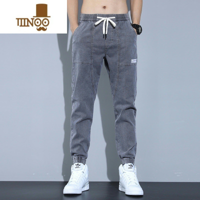 YANXU牛仔裤男款夏季新款宽松束脚哈伦裤韩版潮流时尚大码百搭休闲裤子