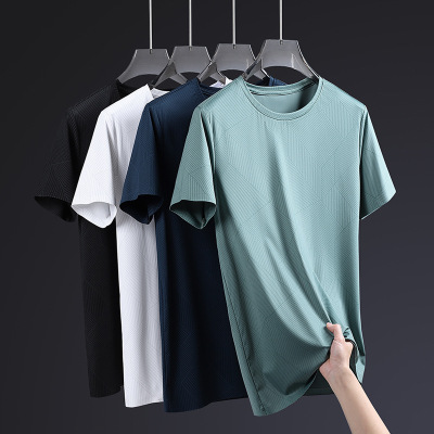 夏季新款男士圆领冰丝无痕T恤男装休闲短袖速干男士百搭体恤上衣