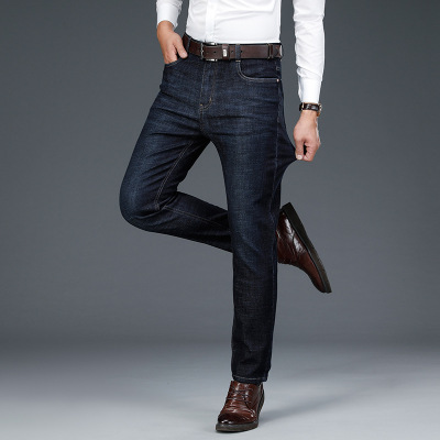 蓝底莫代尔弹力牛仔裤男中年宽松直筒长裤经典爸爸男装专柜品质潮