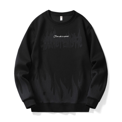 男装春秋季潮牌男士卫衣火焰印花圆领套头宽松薄款大码卫衣男