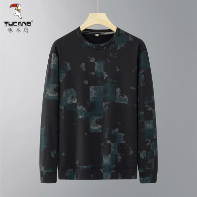 啄木鸟大码圆领印花卫衣男士宽松休闲长袖T恤胖子男装打底衫上衣