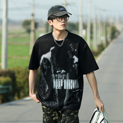 夏季210g短袖T恤男潮牌印花落肩宽松版型半袖打底衫男装