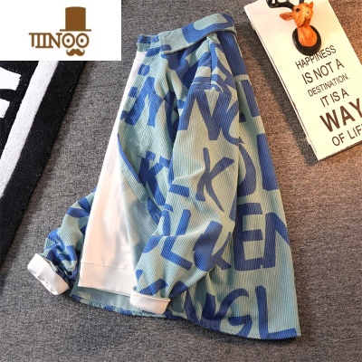 YANXU美式复古灯芯绒长袖衬衫男高街痞帅潮流宽松男装外套潮牌衣服