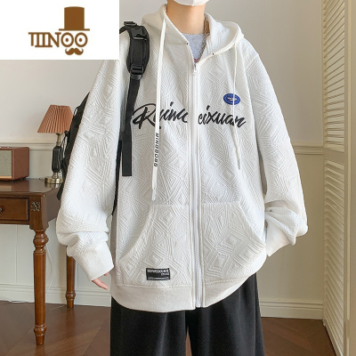 YANXU胖子潮牌连帽开衫卫衣oversize美式复古大码男装棒球服外套男春季