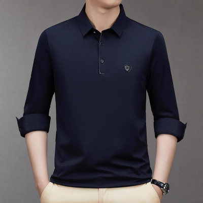 新款T恤男士翻领纯色春秋季薄款中年休闲男装打底衫体恤百搭上衣