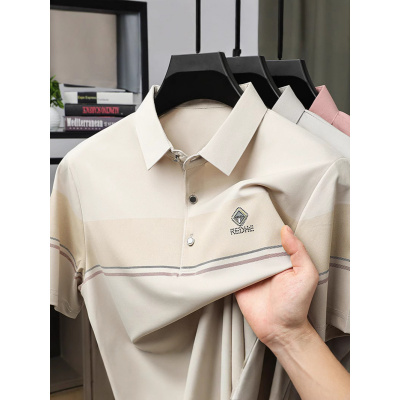 夏季新款男士短袖polo衫条纹拼色时尚休闲上衣翻领男装薄款T恤潮