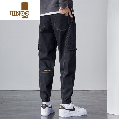 YANXU2023新款潮牌工装裤子男士宽松夏季九分束脚裤休闲长裤男装