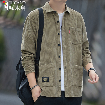 啄木鸟纯棉灯芯绒衬衫男士秋冬款长袖工装风全棉宽松衬衣男装外套