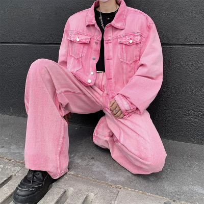 男装春秋季新款长袖夹克牛仔套装男复古做旧痞帅青少年潮夹克外套