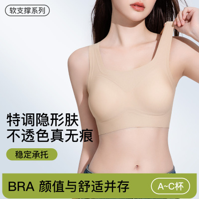 7A抑菌特调粉底液无痕内衣女软支撑无钢圈背心式文胸运动美背胸罩