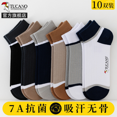 [7A抗菌]男士短袜子夏季薄款纯棉纱线夏天防臭男生运动船袜春秋