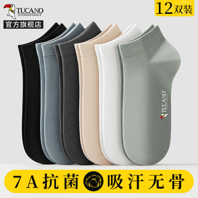 [7A抗菌]袜子男士短袜夏季薄款棉袜吸汗防臭男生不掉跟船袜夏天