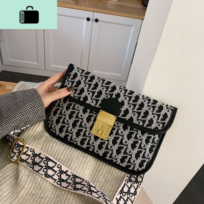 包包2020新款时尚韩版潮小方包复古百搭宽肩带斜挎女包气质单肩包NEW LAKE DIO黑色女士单肩包
